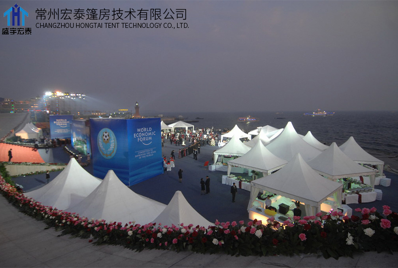 The top of the polygonal peak tent is a peak style, which makes the shape more beautiful, quick and convenient to disassemble and assemble, and small in storage and transportation. It is widely used in large outdoor private parties, wedding gatherings, product promotions, sports events and other activities.